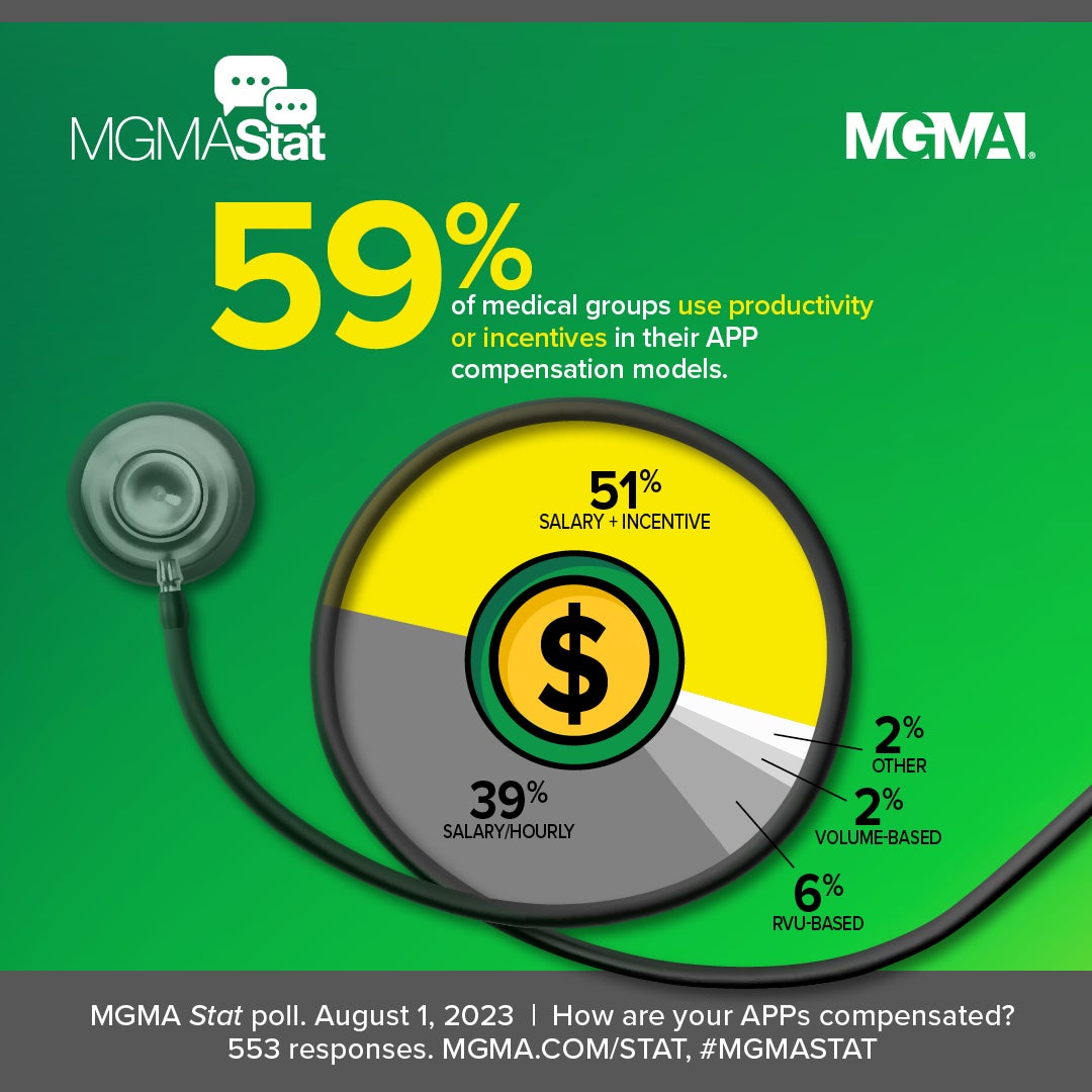 • It also echoes March 2025 polling in which 53% of practice leaders reported their APP compensation models are RVU-based, volume-based or have some form of incentive on top of a salary.